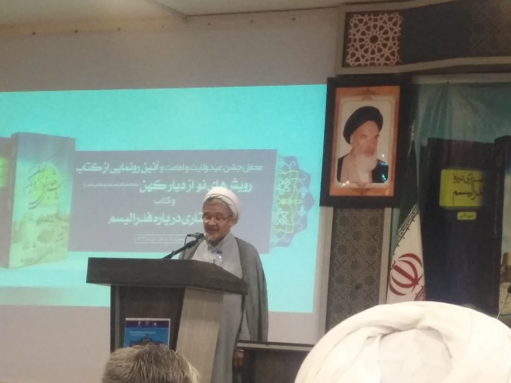 دکتر عباسی رییس جامعه المصطفی العالمیه سخنران پایانی این محفل بود که وی سخنان خود را به دو بخش اهمیت غدیر و اهمیت کارهای علمی فرهنگی اختصاص داد. وی نسبت به مسئله نحوه زمامداری و اداره جامعه در اسلام گفت: طبق فرموده امام صادق، اسلام بر پنج پایه اساسی نماز، زکات، روزه، حج و ولایت بنا شده است. وی ضمن اشاره به حقوق بشر گفت: امروز کسانی مدعی رعایت حقوق بشر در دنیا هستند و دیگران را متهم به نقض حقوق بشر میکنند که سالها پدران و اجداد شان تاجران برده در سراسر جهان بودند و تاهنوز محل نگهداری و زندان موقت بردگان در کنار سواحل آفریقا که منتظر رسیدن کشتی حمل بردگان بود، وجود دارد. جای تأسف دارد افرادی که در تمدن غربی به عنوان پدران آازادی و دموکراسی از آن ها یاد میشود که خود از بزرگترین تجار برده در دنیا بودهاند. رئیس جامعه المصطفی ضمن اشاره به سالها رنج و بی عدالتی در افغانستان گفت ثبت وقایع تاریخی و برجسته کردن نقش کسانی که در تحولات یک کشور نقش دارند، اهمیت بسزایی دارد و کار امروز شما در این راستا بوده و قابل ارج است. دکتر ابراهیمی دبیر شورای علما و طلاب بامیان نیز در یکی از بخشهای از محفل ضمن معرفی این شورا به اهمیت و ضرورت تدوین کتاب رویشهای نو از دیار کهن پرداخت و به حاضران خیر مقدم گفت. در پایان، محفل با آیین رونمایی کتابهای "جستاری در باره فدرالیسم" و "رویشهای نو از دیار کهن" به پایان رسید.