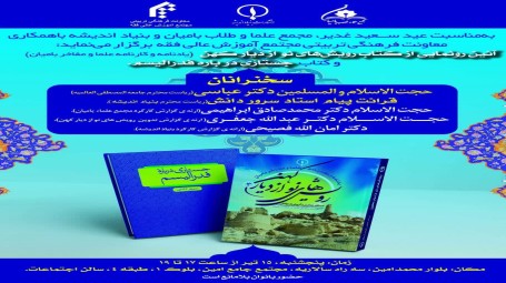 به مناسبت عید سعید غدیر خم؛ مجمع علماء و طلاب بامیان و همکاری معاونت فرهنگی تربیتی مجمتع آموزش عالی فقه برگزار می نماید: