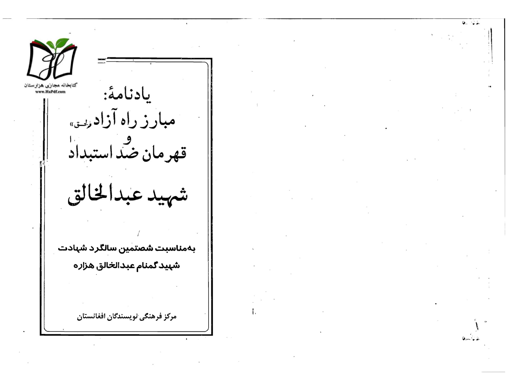 یادنامه مبارز راه آزادی و قهرمان ضد استبداد شهید عبدالخالق