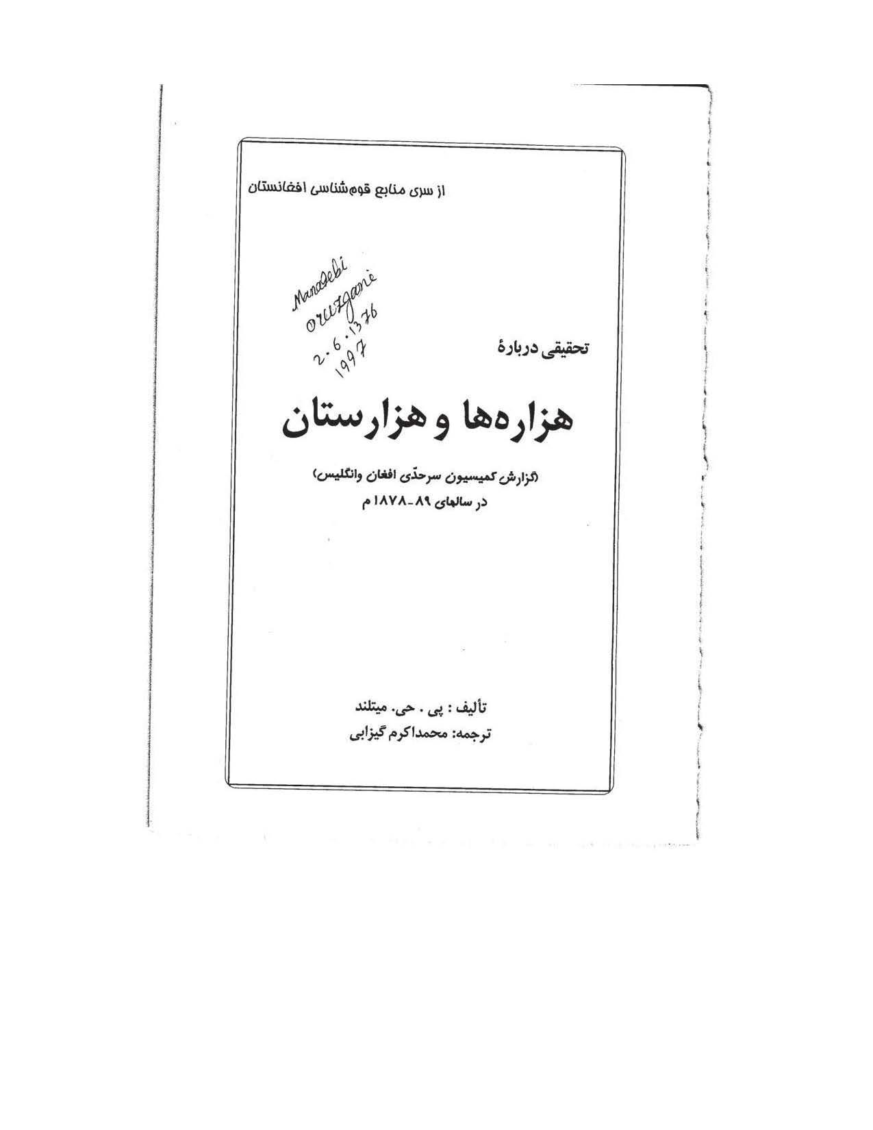 تحقیقی درباره هزارهها و هزارستان(گزارش کمیسیون سرحدی افغان و انگلیس در سالهای 1878-89)