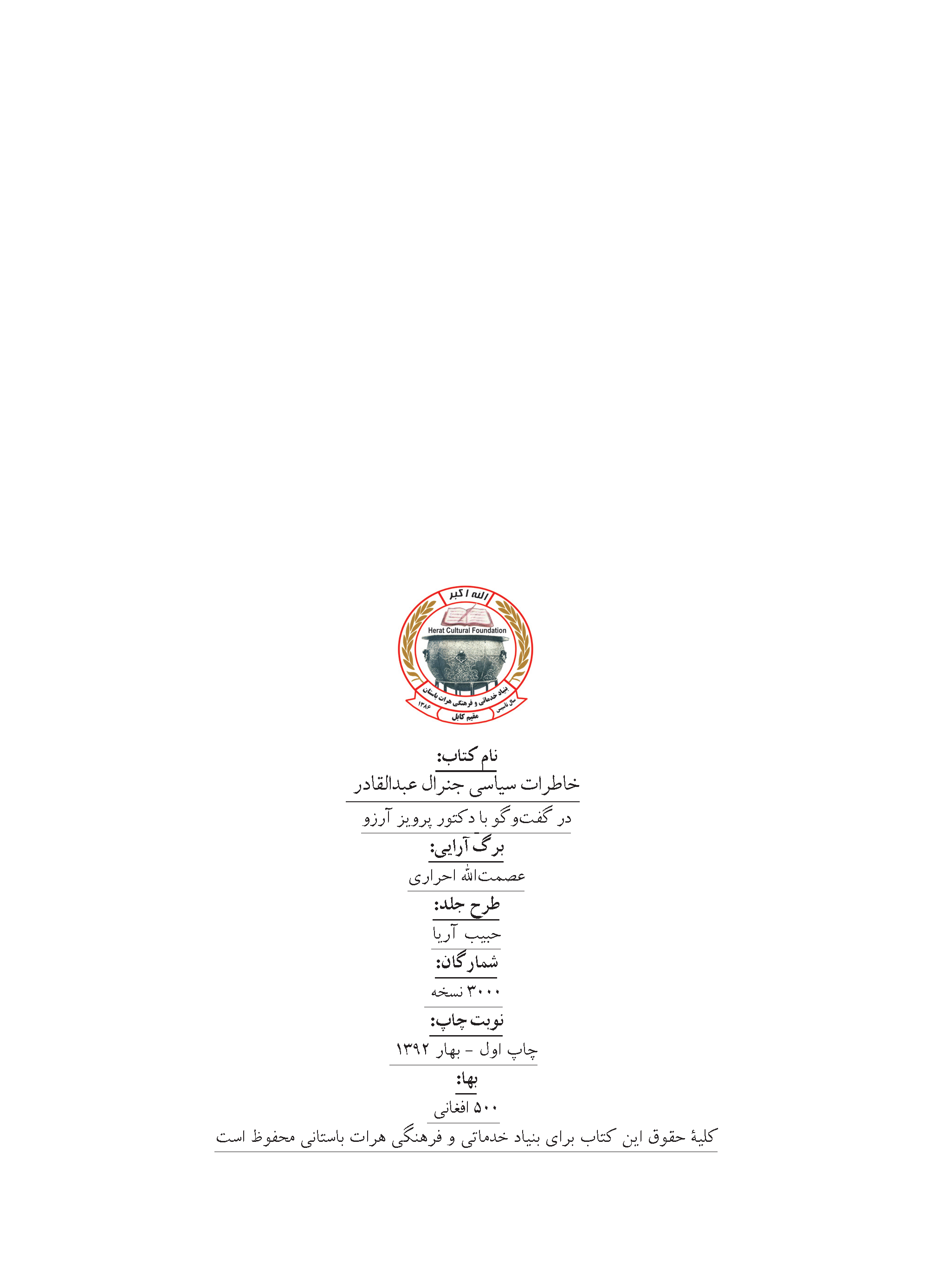 خاطرات سیاسی جنرال عبدالقادر، در گفتوگو با پرویز آرزو