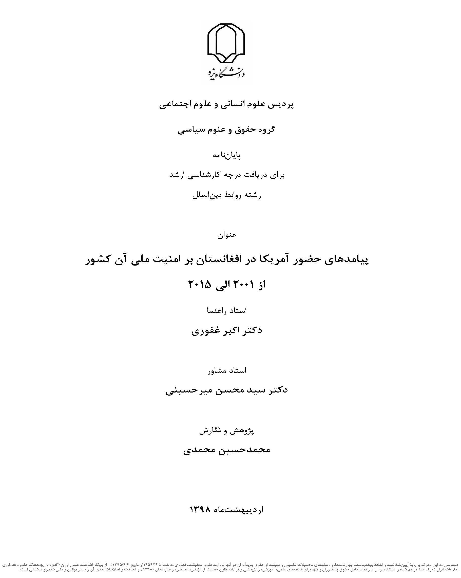 پیامدهای حضور آمریکا در افغانستان بر امنیت ملی کشور