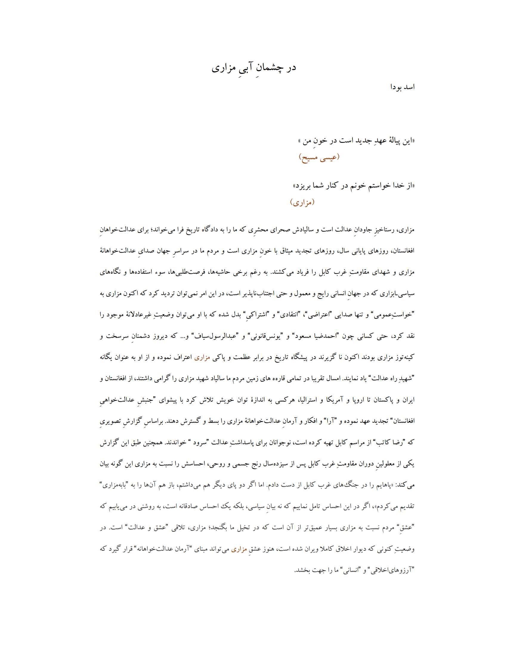 مزاری شــعر و فریاد هــزاره مزاری اوج احساس هـزاره مـزاری عـزم وایمان هـــزاره مزاری موج و طوفان هـزاره