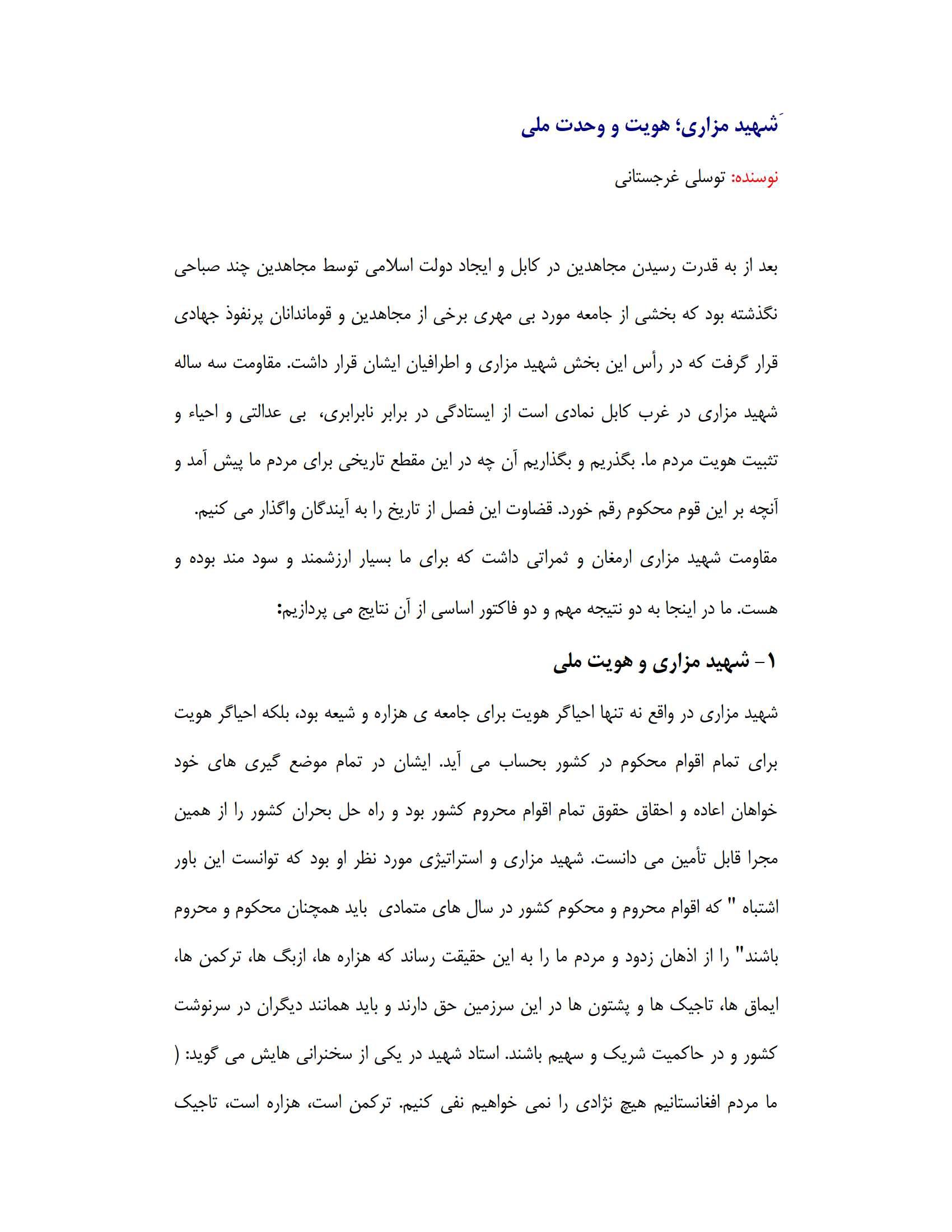 شهید مزاری و وحدت ملی