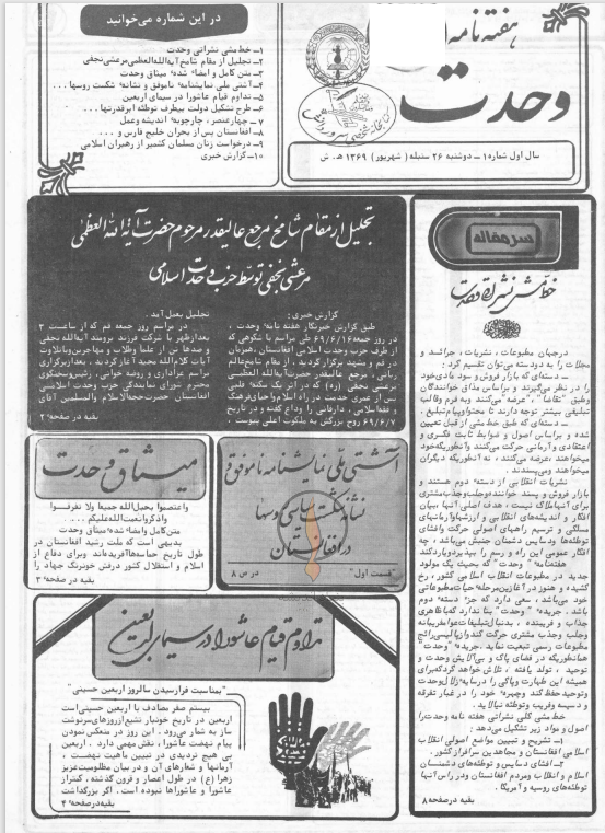 هفته نامه وحدت، جريده سياسي-خبري حزب وحدت اسلامي افغانستان كه در خارج از كشور و در جمهوري اسلامي ايران – شهر مقدس قم- زير نظر كميسيون فرهنگي حزب وحدت اسلامي افغانستان و با مدير مسئولي استاد دانش به نشر مي رسد.