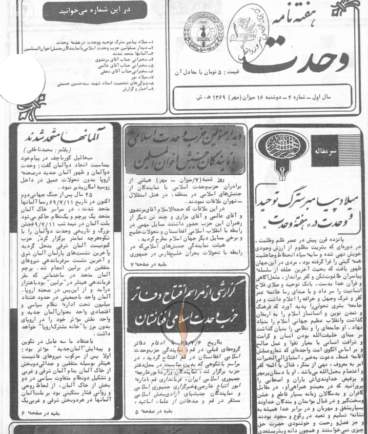 هفته نامه وحدت، جريده سياسي-خبري حزب وحدت اسلامي افغانستان كه در خارج از كشور و در جمهوري اسلامي ايران – شهر مقدس قم- زير نظر كميسيون فرهنگي حزب وحدت اسلامي افغانستان و با مدير مسئولي استاد دانش به نشر مي رسد.