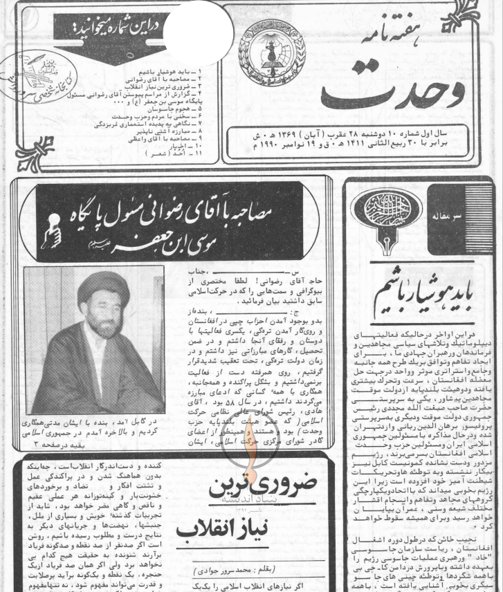 هفته نامه وحدت، جريده سياسي-خبري حزب وحدت اسلامي افغانستان كه در خارج از كشور و در جمهوري اسلامي ايران – شهر مقدس قم- زير نظر كميسيون فرهنگي حزب وحدت اسلامي افغانستان و با مدير مسئولي استاد دانش به نشر مي رسد.