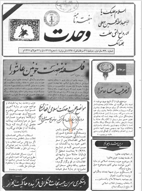 هفته نامه وحدت، جريده سياسي-خبري حزب وحدت اسلامي افغانستان كه در خارج از كشور و در جمهوري اسلامي ايران – شهر مقدس قم- زير نظر كميسيون فرهنگي حزب وحدت اسلامي افغانستان و با مدير مسئولي استاد دانش به نشر مي رسد.