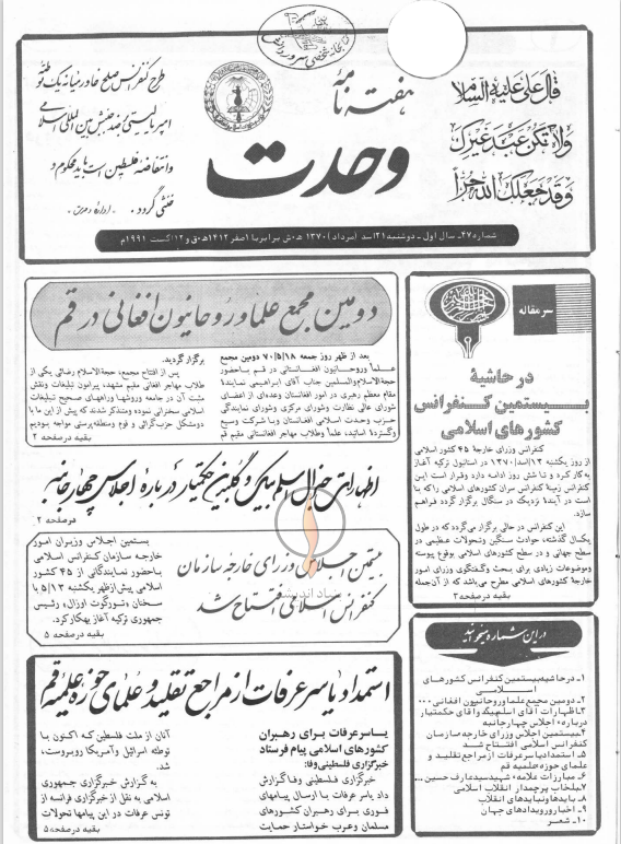5- تحكيم وحدت اسلامي و ملي در افغانستان و جهان اسلام.