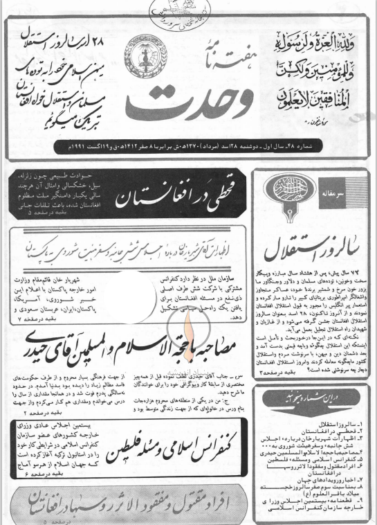 5- تحكيم وحدت اسلامي و ملي در افغانستان و جهان اسلام.