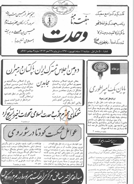 هفته نامه وحدت، جريده سياسي-خبري حزب وحدت اسلامي افغانستان كه در خارج از كشور و در جمهوري اسلامي ايران – شهر مقدس قم- زير نظر كميسيون فرهنگي حزب وحدت اسلامي افغانستان و با مدير مسئولي استاد دانش به نشر مي رسد.