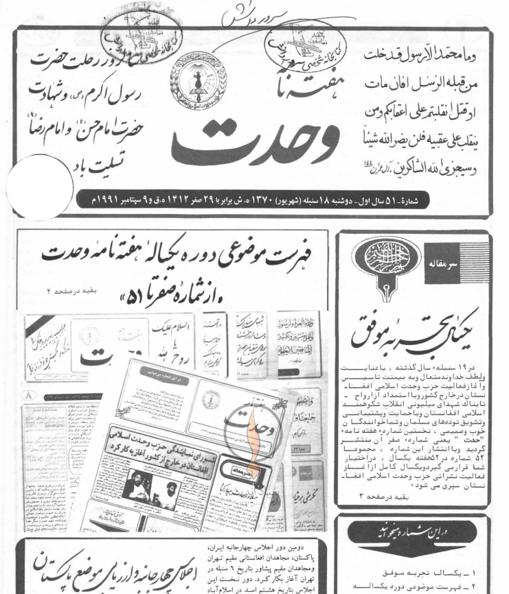 هفته نامه وحدت، جريده سياسي-خبري حزب وحدت اسلامي افغانستان كه در خارج از كشور و در جمهوري اسلامي ايران – شهر مقدس قم- زير نظر كميسيون فرهنگي حزب وحدت اسلامي افغانستان و با مدير مسئولي استاد دانش به نشر مي رسد.