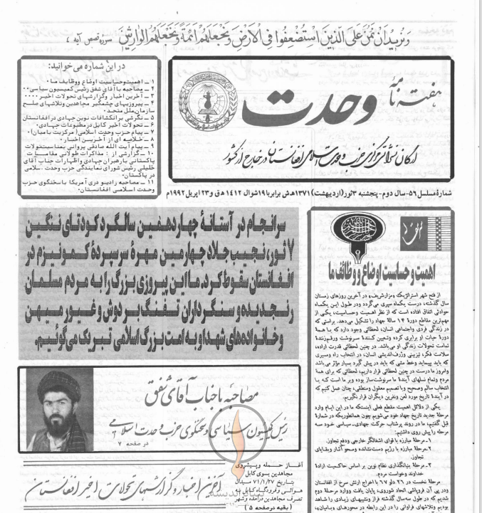 1- تشريح و تبيين مواضع اصولي انقلاب اسلامي افغانستان و مجاهدين سر افراز كشور.