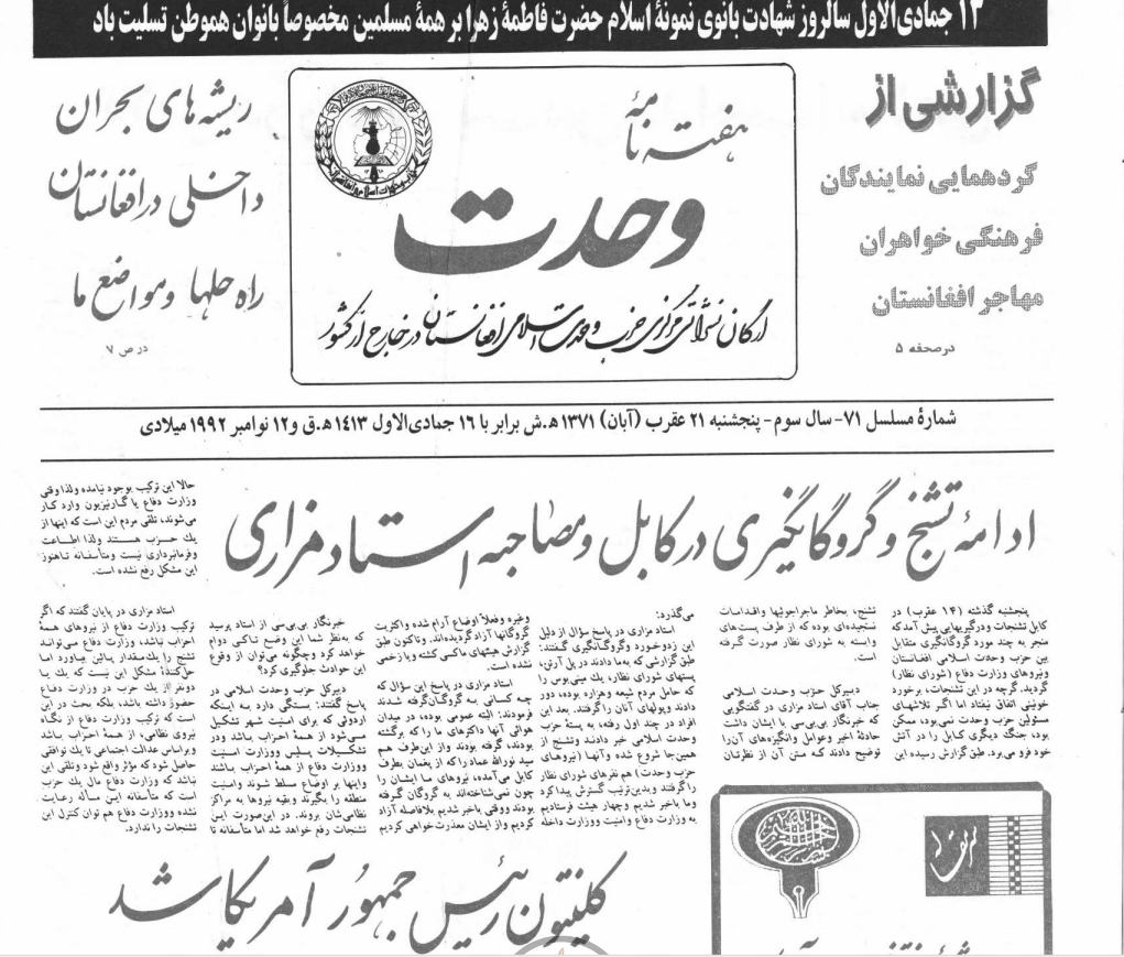 هفته نامه وحدت، جريده سياسي-خبري حزب وحدت اسلامي افغانستان كه در خارج از كشور و در جمهوري اسلامي ايران – شهر مقدس قم- زير نظر كميسيون فرهنگي حزب وحدت اسلامي افغانستان و با مدير مسئولي استاد دانش به نشر مي رسد.