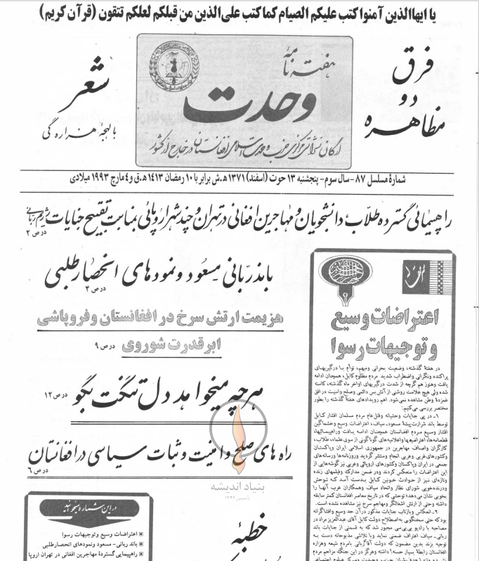 هفته نامه وحدت، جريده سياسي-خبري حزب وحدت اسلامي افغانستان كه در خارج از كشور و در جمهوري اسلامي ايران – شهر مقدس قم- زير نظر كميسيون فرهنگي حزب وحدت اسلامي افغانستان و با مدير مسئولي استاد دانش به نشر مي رسد.
