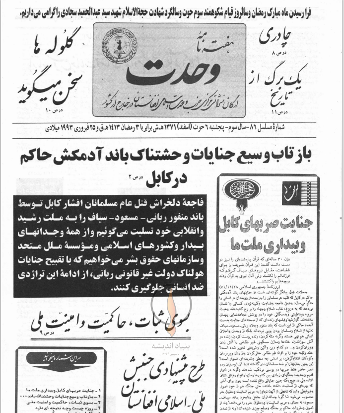 دسته بندی نشریات افغانستان هفته نامه ها هفـــته نامـــه‌ی وحــدت