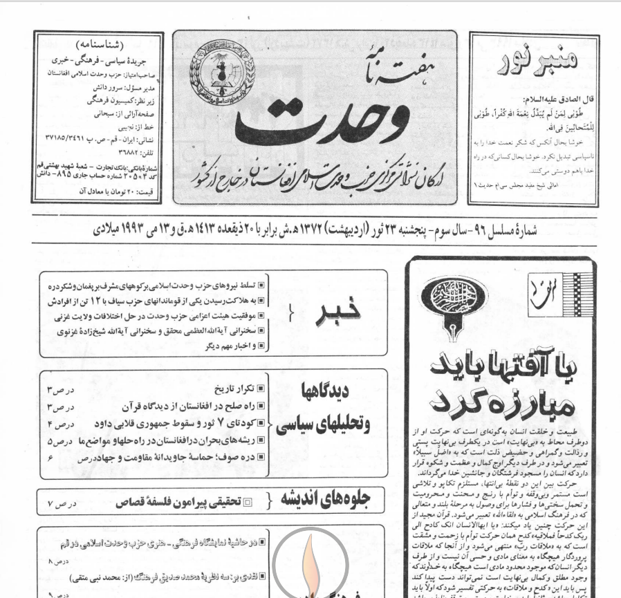 هفته نامه وحدت شماره 96