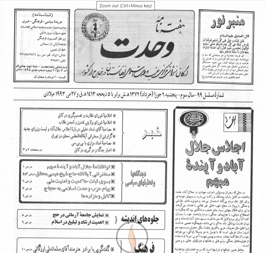 هفتهنامهی « وحدت»، سال سوم (1372) شماره 99