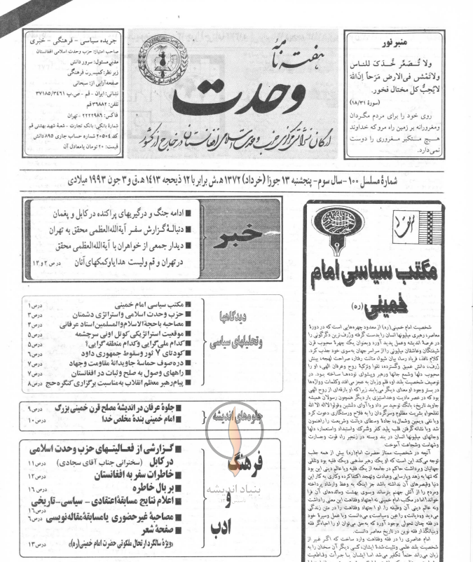 هفتهنامهی « وحدت»، سال سوم (1372) شماره 100