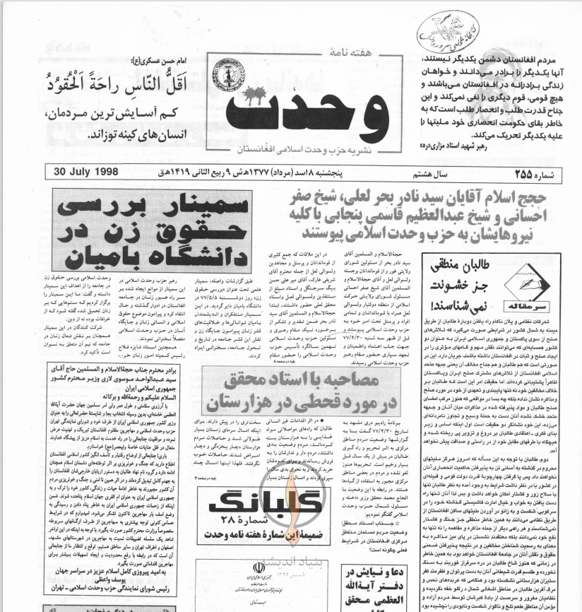 هفتهنامهی « وحدت»، سال هشتم (1377) شماره 255