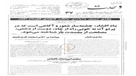 نامه خبری وحدت، شماره ۳۷