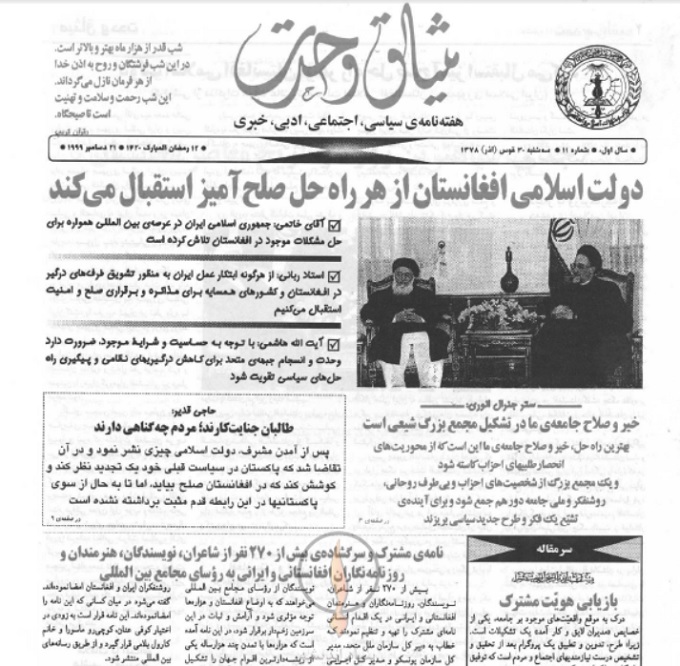 هفتهنامه «میثاق وحدت» که اکنون در اختیار شما کاربران و مخاطبین گرامی قرار دارد؛ از برکات تشکیل حزب وحدت است که به ابتکار و رهبری شهید عبدالعلی مزاری به بار نشسته است. تلاشهای شبانهروزی رهبر شهید و برگزاری جلساتی مهم و سرنوشتساز ایشان با رهبران احزاب جهادی شیعی در مناطق مرکزی افغانستان از پنجاب بامیان شروع تا لعل و سرجنگل، بهسود و جاغوری و دایکندی؛ موجب گردید که امروز نام شیعه و هزاره افتخار آفرین باشد.