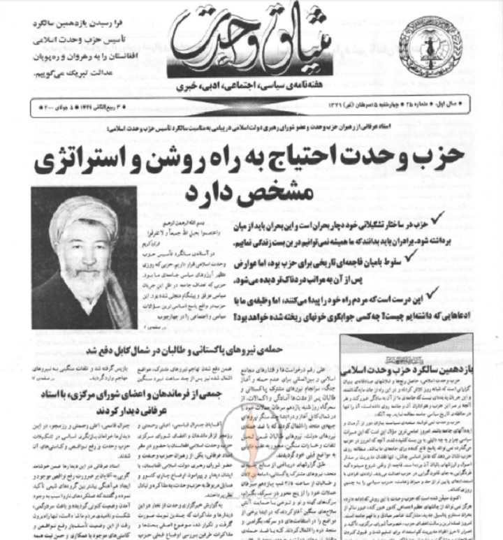هفتهنامه «میثاق وحدت» که اکنون در اختیار شما کاربران و مخاطبین گرامی قرار دارد؛ از برکات تشکیل حزب وحدت است که به ابتکار و رهبری شهید عبدالعلی مزاری به بار نشسته است. تلاشهای شبانهروزی رهبر شهید و برگزاری جلساتی مهم و سرنوشتساز ایشان با رهبران احزاب جهادی شیعی در مناطق مرکزی افغانستان از پنجاب بامیان شروع تا لعل و سرجنگل، بهسود و جاغوری و دایکندی؛ موجب گردید که امروز نام شیعه و هزاره افتخار آفرین باشد.