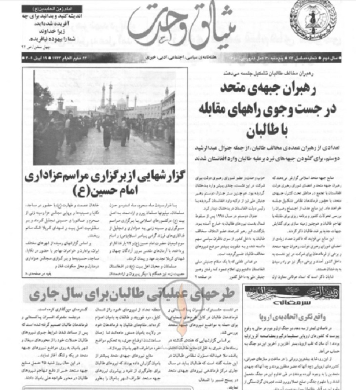 هفتهنامه «میثاق وحدت» که اکنون در اختیار شما کاربران و مخاطبین گرامی قرار دارد؛ از برکات تشکیل حزب وحدت است که به ابتکار و رهبری شهید عبدالعلی مزاری به بار نشسته است. تلاشهای شبانهروزی رهبر شهید و برگزاری جلساتی مهم و سرنوشتساز ایشان با رهبران احزاب جهادی شیعی در مناطق مرکزی افغانستان از پنجاب بامیان شروع تا لعل و سرجنگل، بهسود و جاغوری و دایکندی؛ موجب گردید که امروز نام شیعه و هزاره افتخار آفرین باشد.