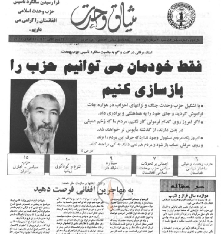 هفتهنامه «میثاق وحدت» که اکنون در اختیار شما کاربران و مخاطبین گرامی قرار دارد؛ از برکات تشکیل حزب وحدت است که به ابتکار و رهبری شهید عبدالعلی مزاری به بار نشسته است. تلاشهای شبانهروزی رهبر شهید و برگزاری جلساتی مهم و سرنوشتساز ایشان با رهبران احزاب جهادی شیعی در مناطق مرکزی افغانستان از پنجاب بامیان شروع تا لعل و سرجنگل، بهسود و جاغوری و دایکندی؛ موجب گردید که امروز نام شیعه و هزاره افتخار آفرین باشد.