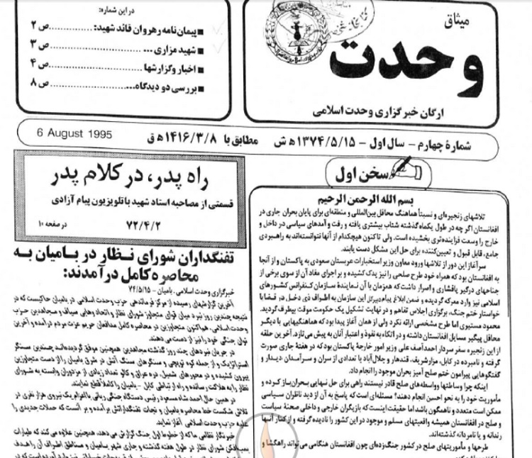 هفتهنامه «میثاق وحدت» که اکنون در اختیار شما کاربران و مخاطبین گرامی قرار دارد؛ از برکات تشکیل حزب وحدت است که به ابتکار و رهبری شهید عبدالعلی مزاری به بار نشسته است. تلاشهای شبانهروزی رهبر شهید و برگزاری جلساتی مهم و سرنوشتساز ایشان با رهبران احزاب جهادی شیعی در مناطق مرکزی افغانستان از پنجاب بامیان شروع تا لعل و سرجنگل، بهسود و جاغوری و دایکندی؛ موجب گردید که امروز نام شیعه و هزاره افتخار آفرین باشد.