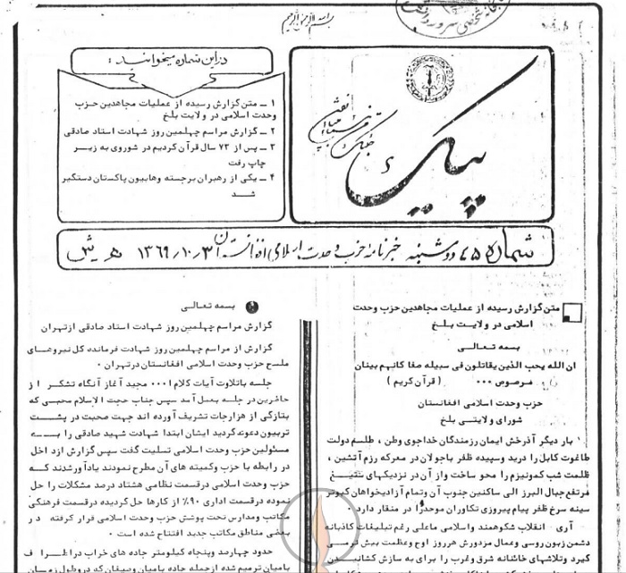 1-متن گزارش رسیده از عملیات مجاهدین حزب وحدت اسلامی در ولایت بلخ