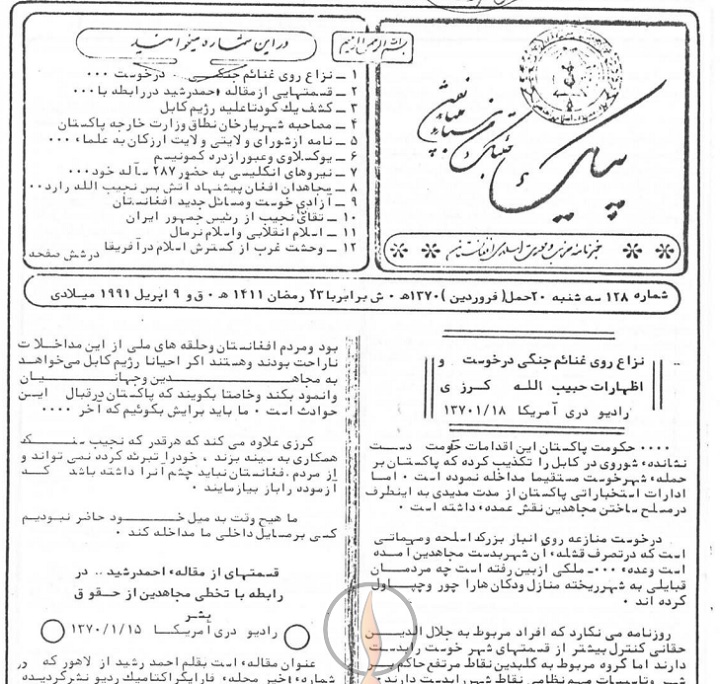 8- مجاهدان افغان پیشنهاد آتش بس نجیب الله را رد ...
