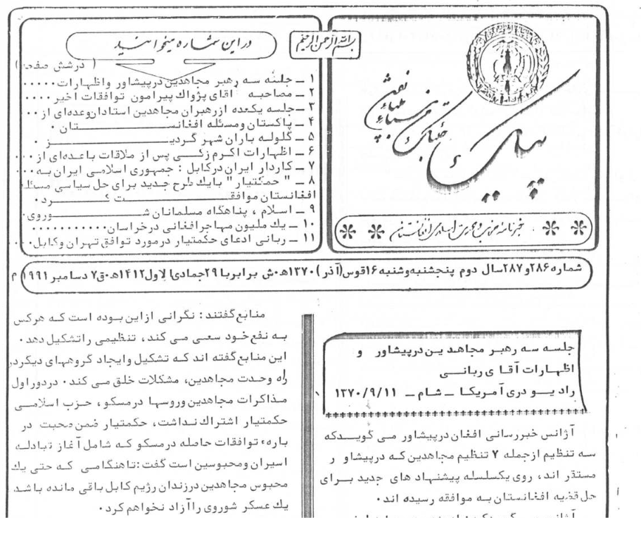 1- جلسه سه رهبر مجاهدین در پیشاور و اظهارات ...