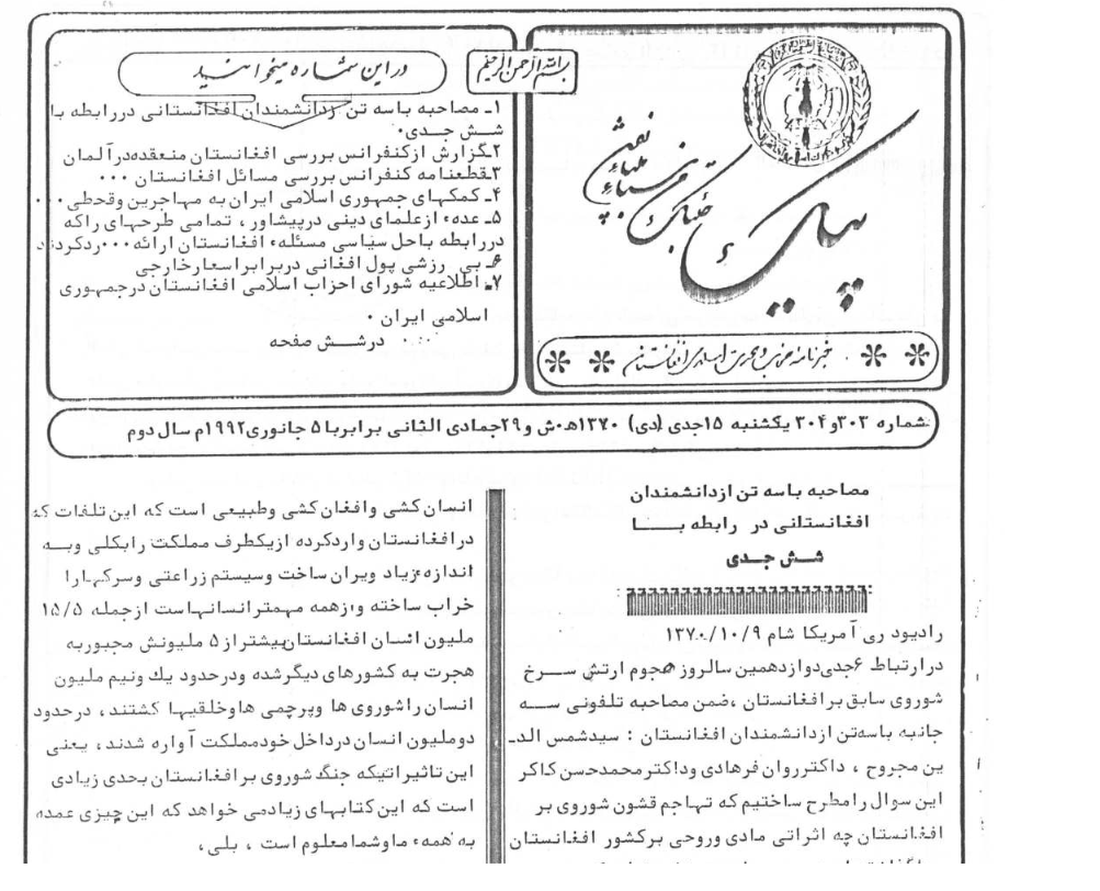 1- مصاحه با سه تن از دانشمندان افغانستانی در رابطه با شش جدی