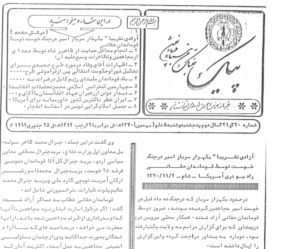 1- آزادی تقریبا یک هزار سرباز اسیر در جنگ خوست توسط قومانادانان حقانی