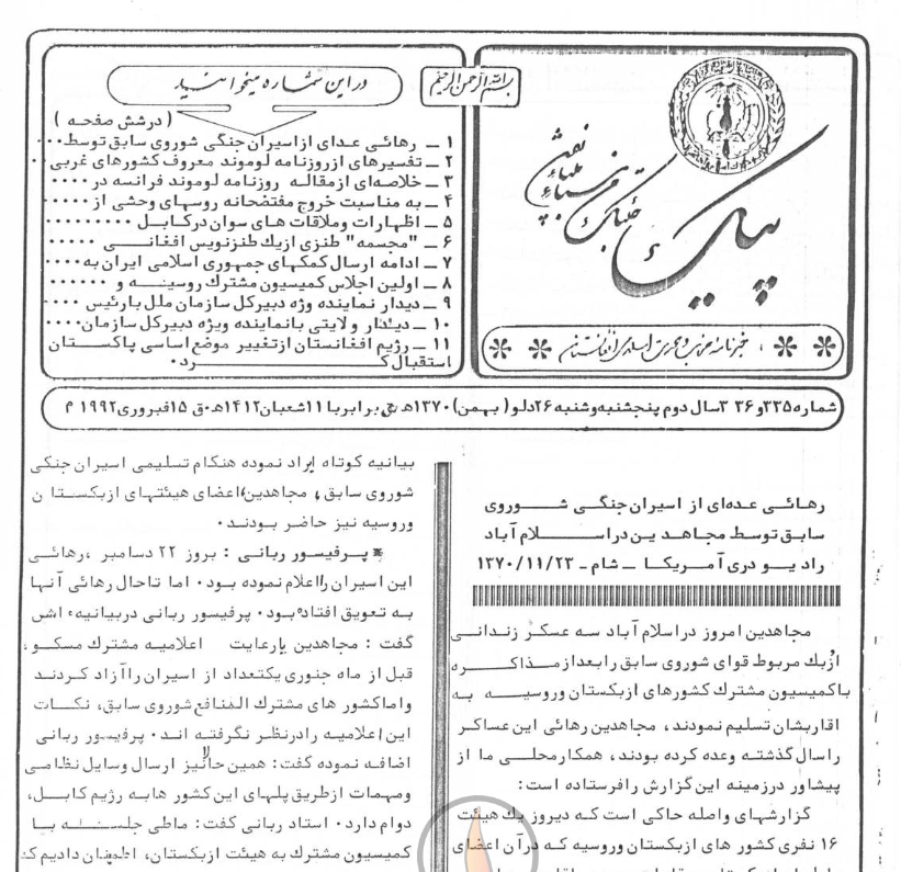 1- رهائی عده ای از اسیران جنگی شوروی سابق توسط