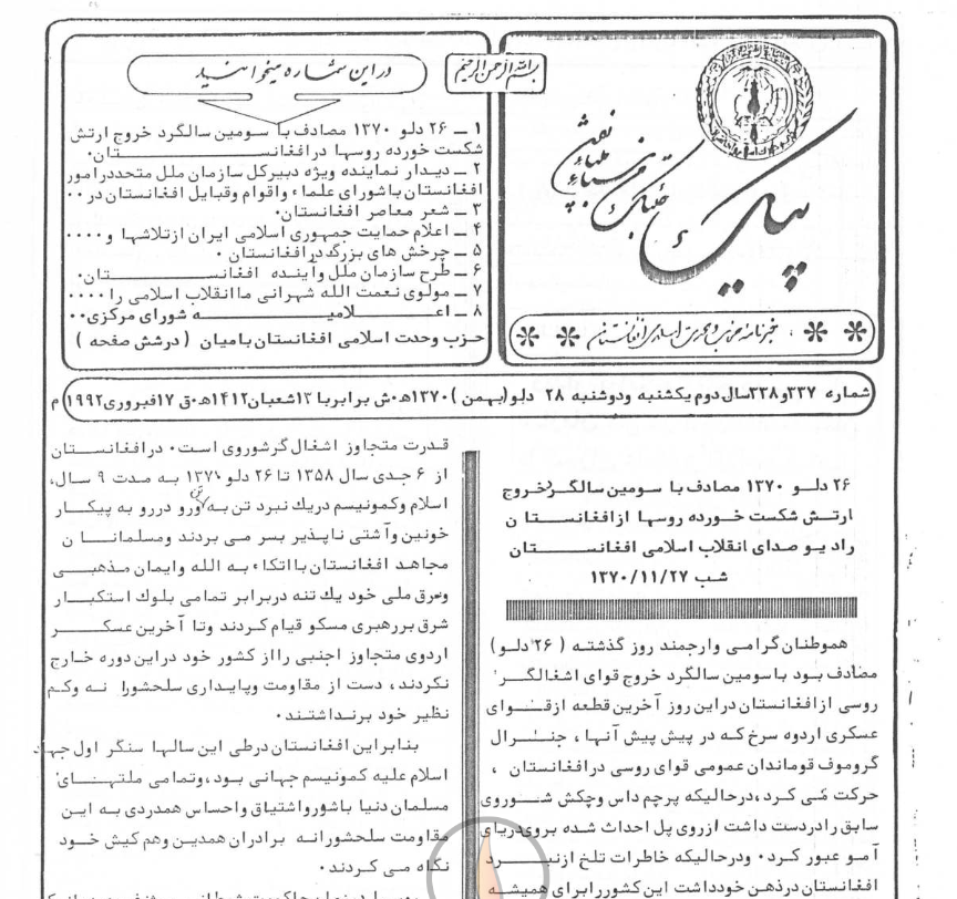 1- 26 دلو 1370مصادف با سومین سالگرد خروج ارتش شکست خورده روسها درافغانستان