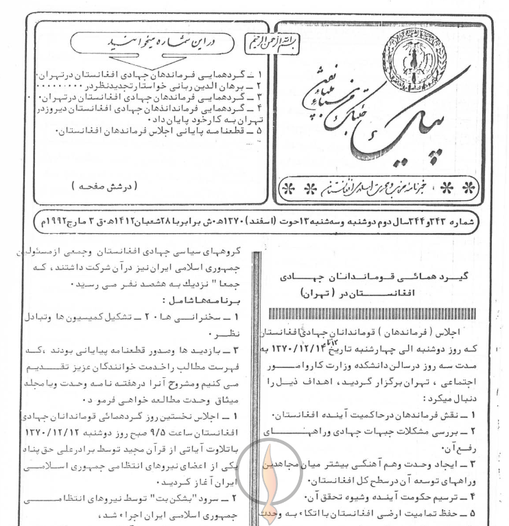 3- گردهمایی فرماندهان جهادی افغانستان در تهران.