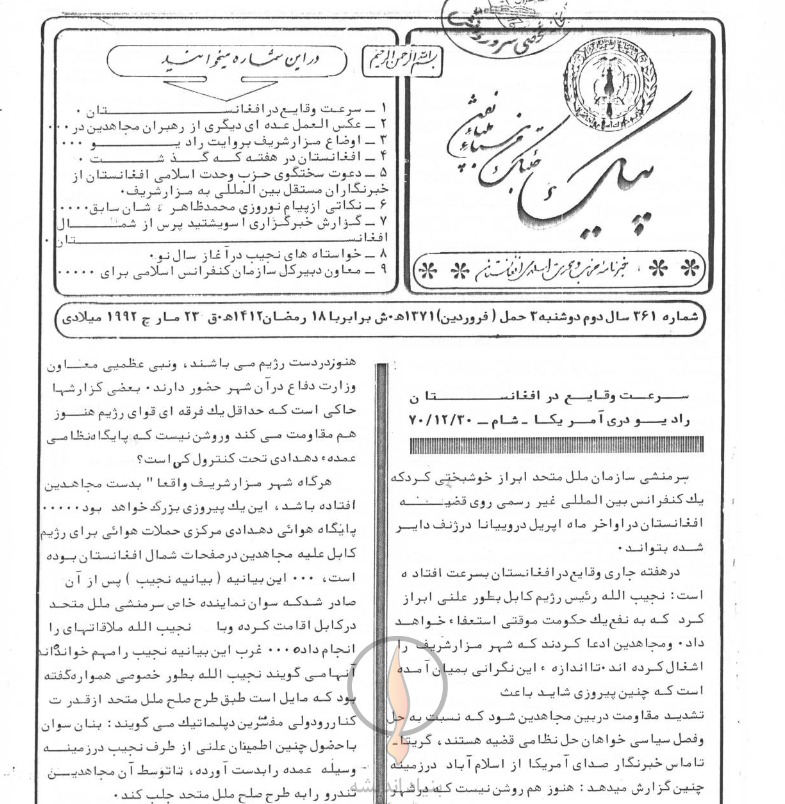 5- دعوت سخنگوی حزب وحدت اسلامی افغانستان از خبرنگاران مستقل بین المللی به مزار شریف.