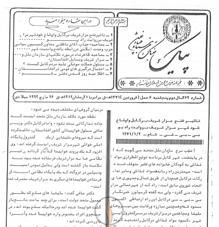 1- تاثیر فتح مزار شریف بر کابل و اوضاع خود شهر مزار شریف بروایت رادیو.