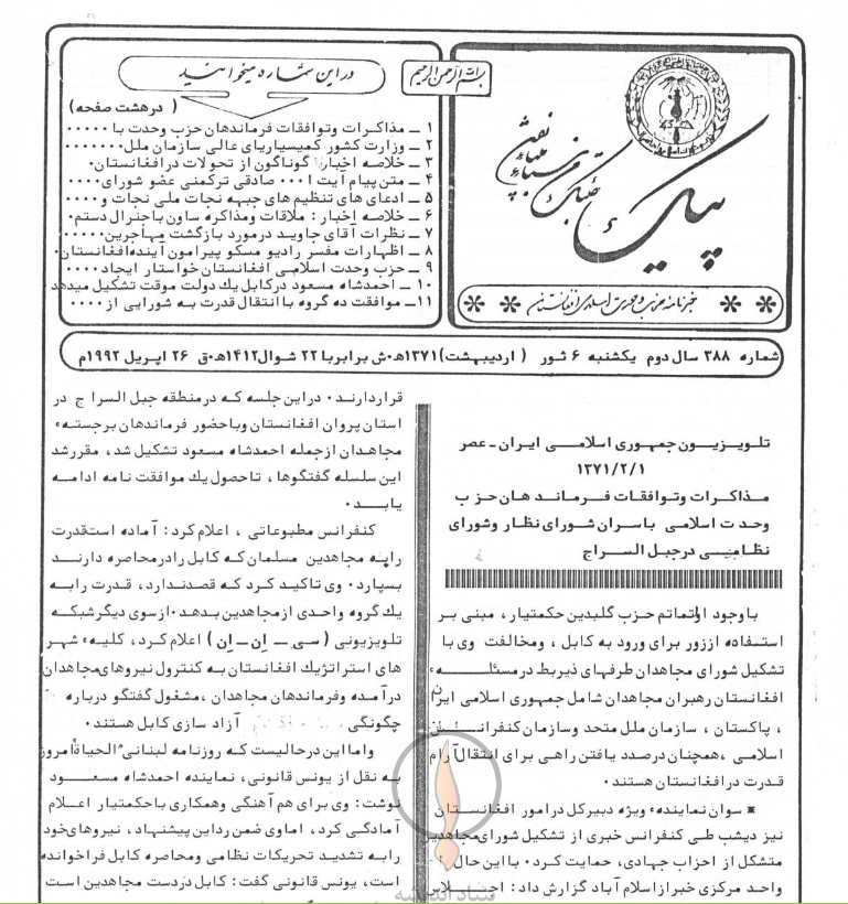 10- احمدشاه مسعود در کابل یک دولت موقت تشکیل میدهد.
