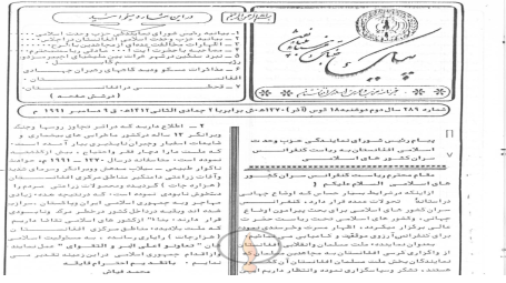 خبرنامه «پیک وحدت» سال دوم (1370) شماره 289