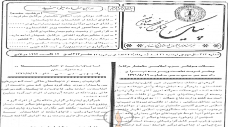 1- حملات موشکی حزب اسلامی حکمتیار بر کابل و سفر فرید.