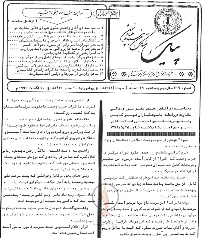 3- مصاحبه با صبغت الله مجددی و نظر ایشان درباره .