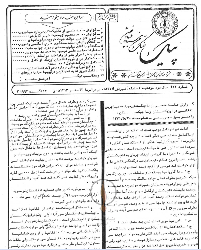 1- گزارش حامد علمی از تاجیکستان درباره مهاجرین .