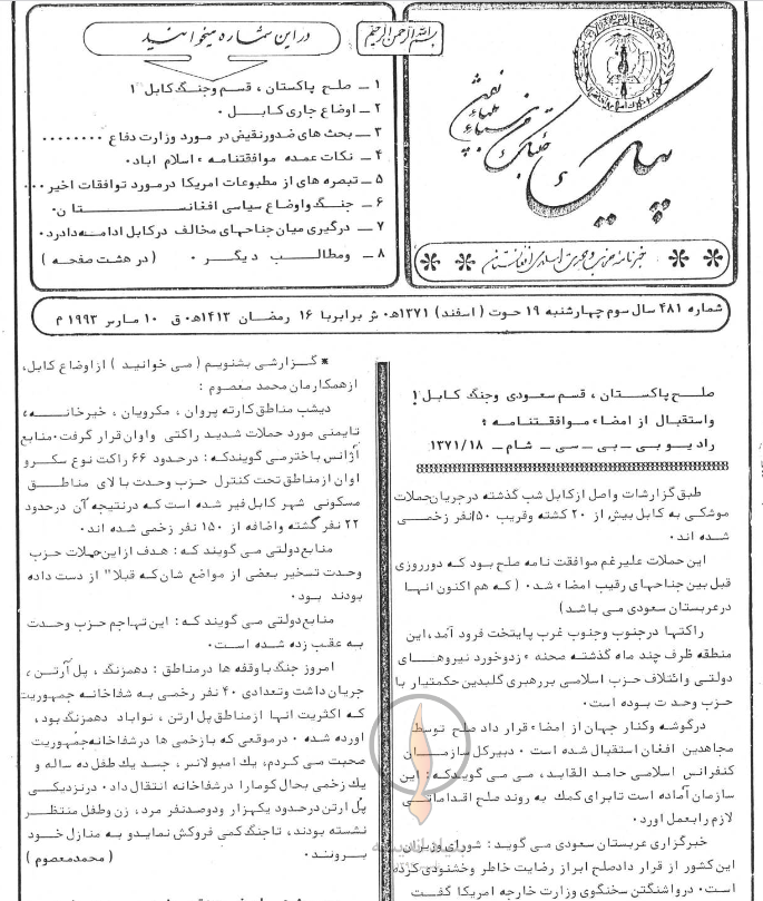 7- درگیری میان جناحهای مخالف در کابل ادامه دارد