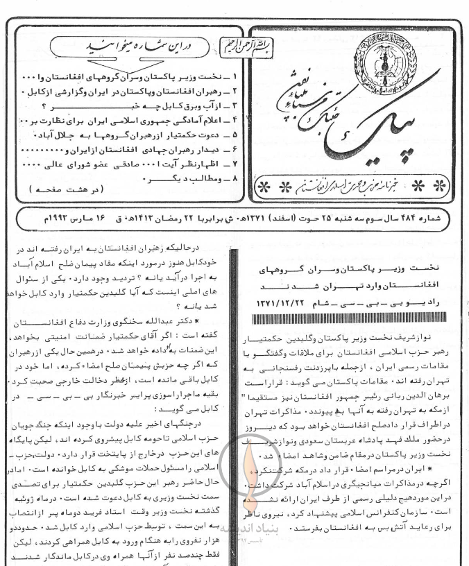 1- نخست وزیر پاکستان و سران گروههای افغانستان و ا