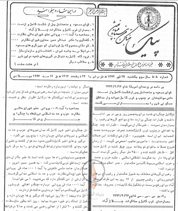 2- بمباران غرب کابل و مذاکرات جلال آباد