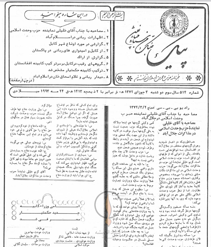 7- ترکیب کابینه حکمتیار مشخص شد