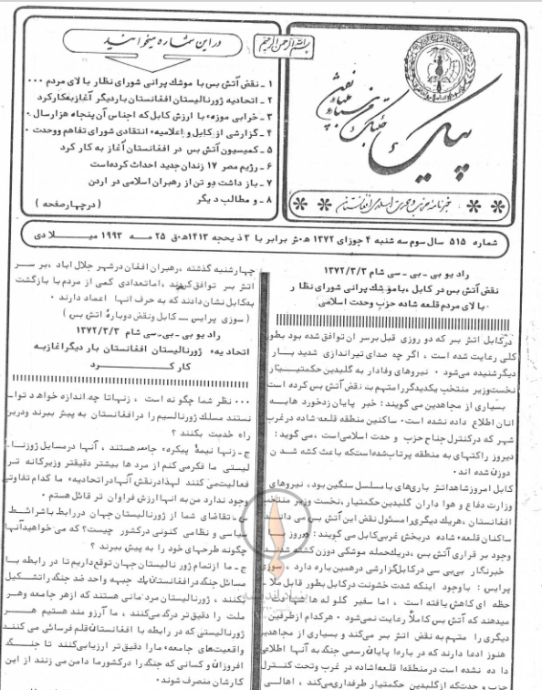 4- گزارشی از کابل و اعلامیهء انتقادی شورای تفاهم و وحدت